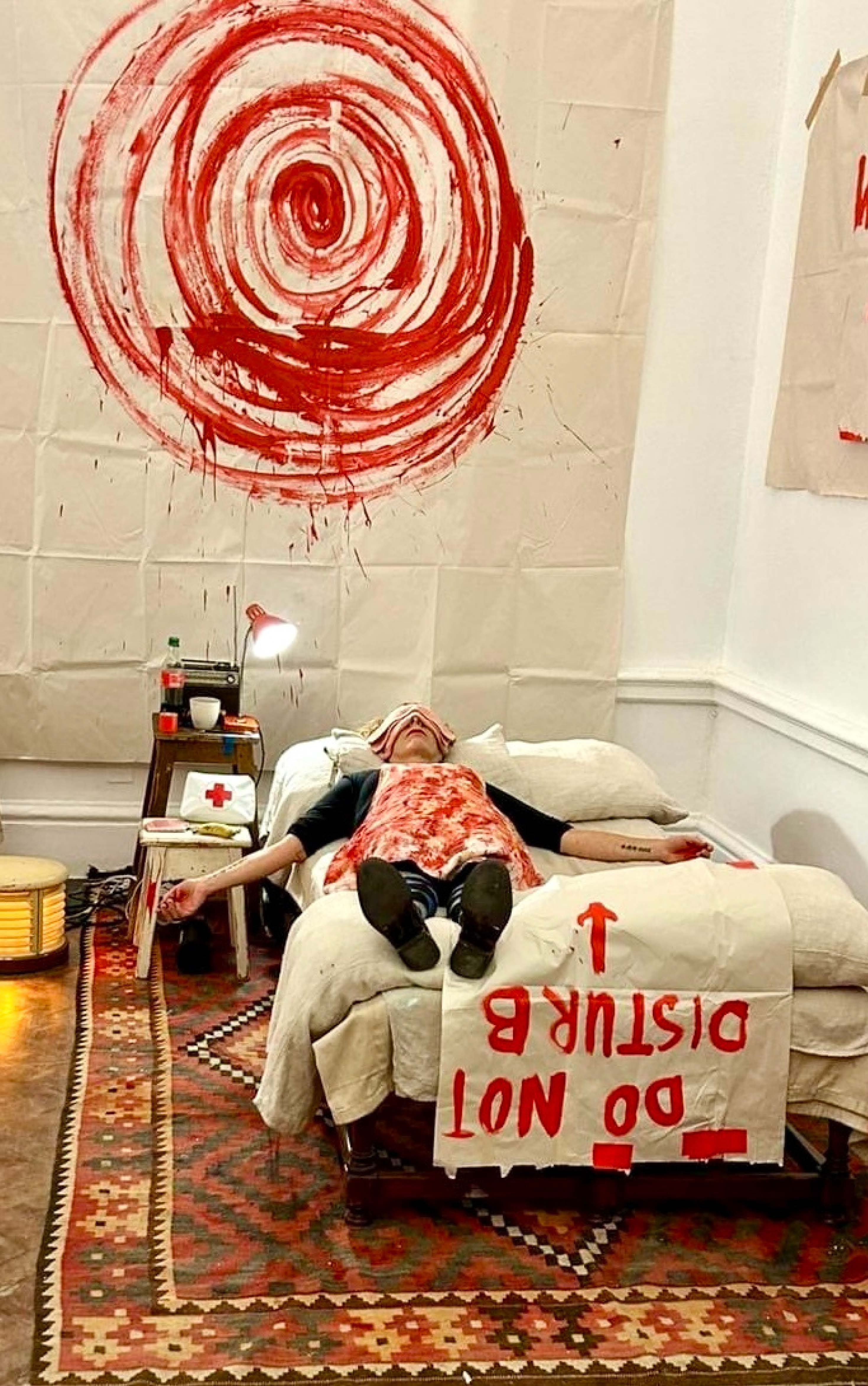 paper takeout packets, mixed media on corrugated cardboard 160 x 160 cm /63" x 63" South African Gallery IZICO, Cape Town, South Africa
